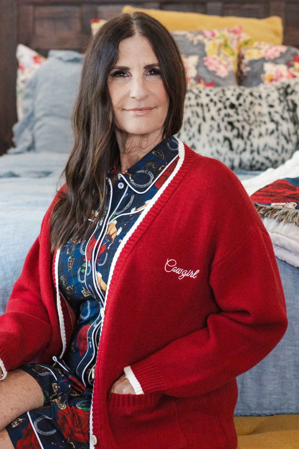 The Cowboy Cardigan honors Western tradition with its classic red knit, white trim, and time-honored craftsmanship. Embroidered horseshoes cradle delicate florals, framing the heartfelt phrase "Found My Cowboy" across the back — a tribute to love, luck, and the legacy of the cowgirl spirit.