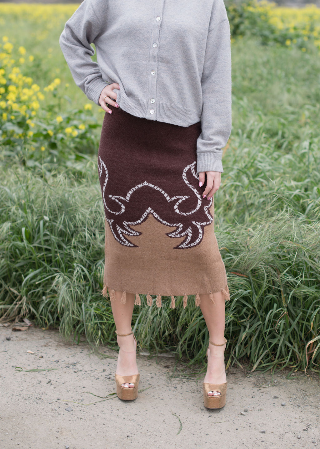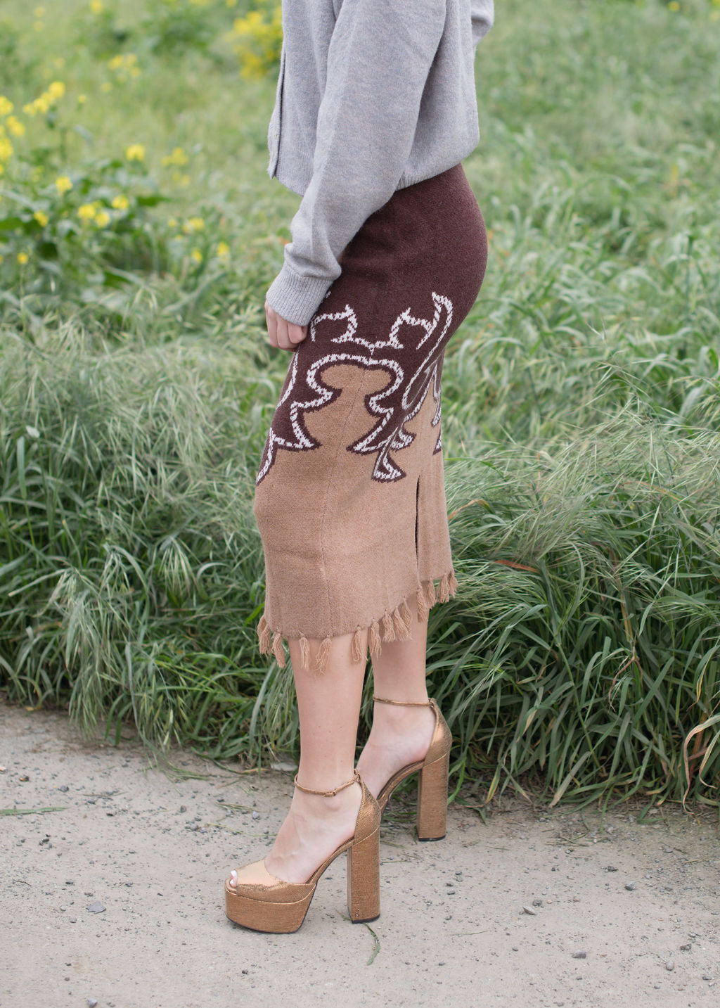 Aztec Knit Fringe Skirt
