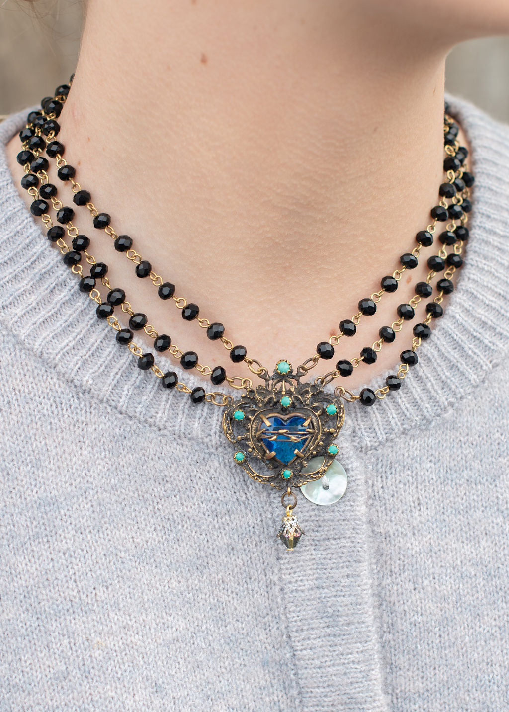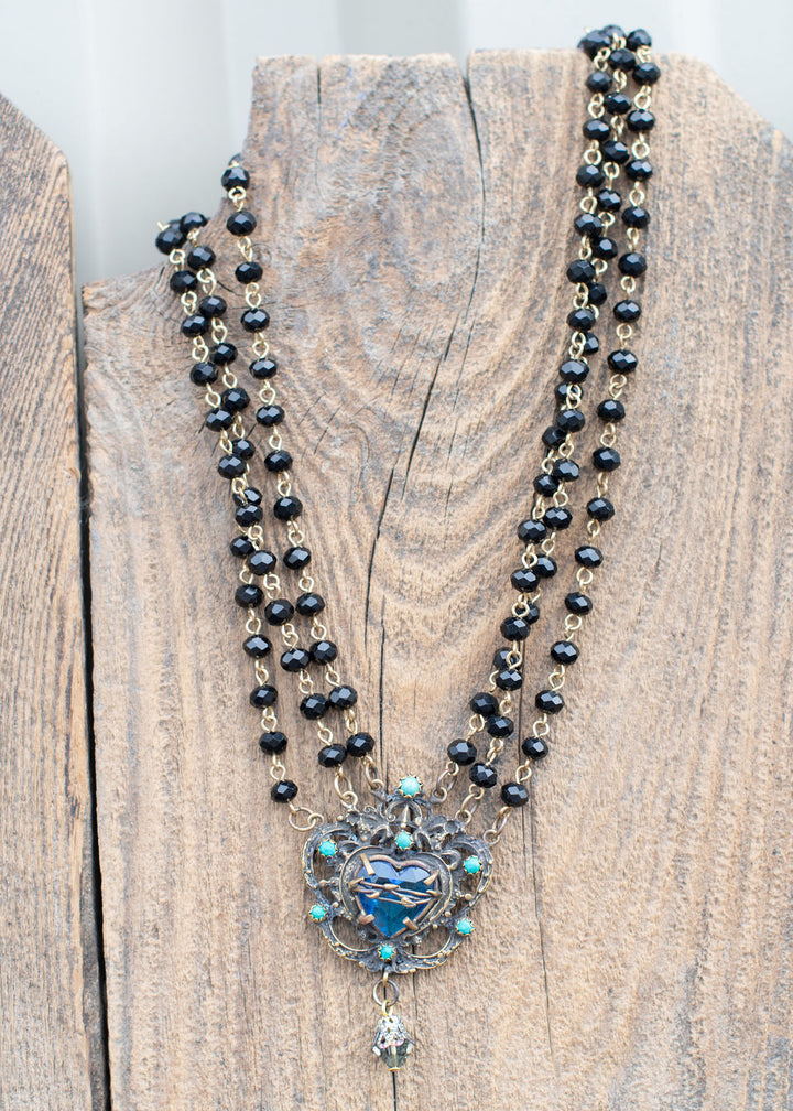 Black Bead Heart Necklace