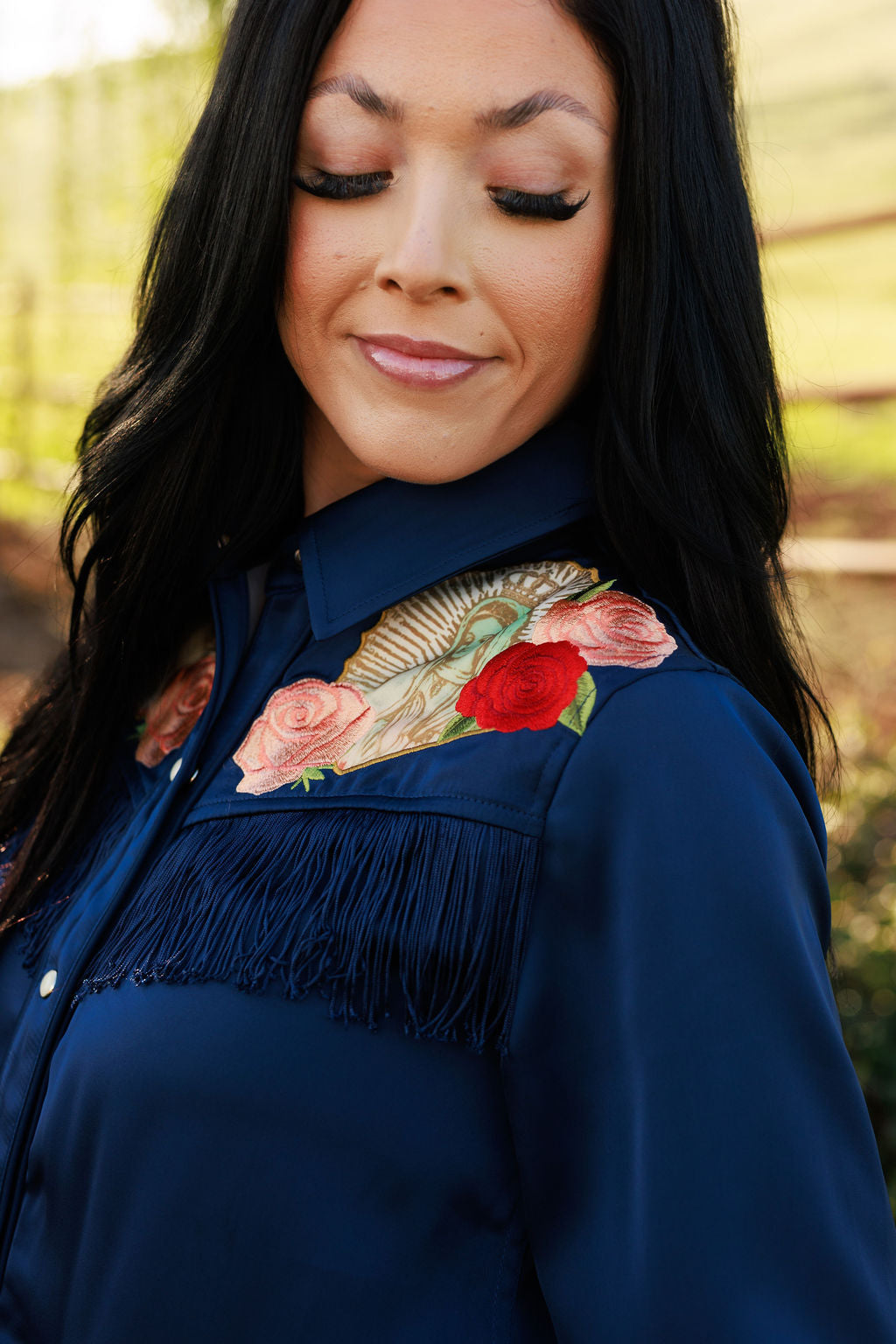 Timeless and effortlessly cool, the Dark Navy Button Up is a wardrobe staple for every cowgirl. Its rich navy hue and classic design make it perfect for layering, dressing up for a night out, or keeping it casual with your favorite denim.