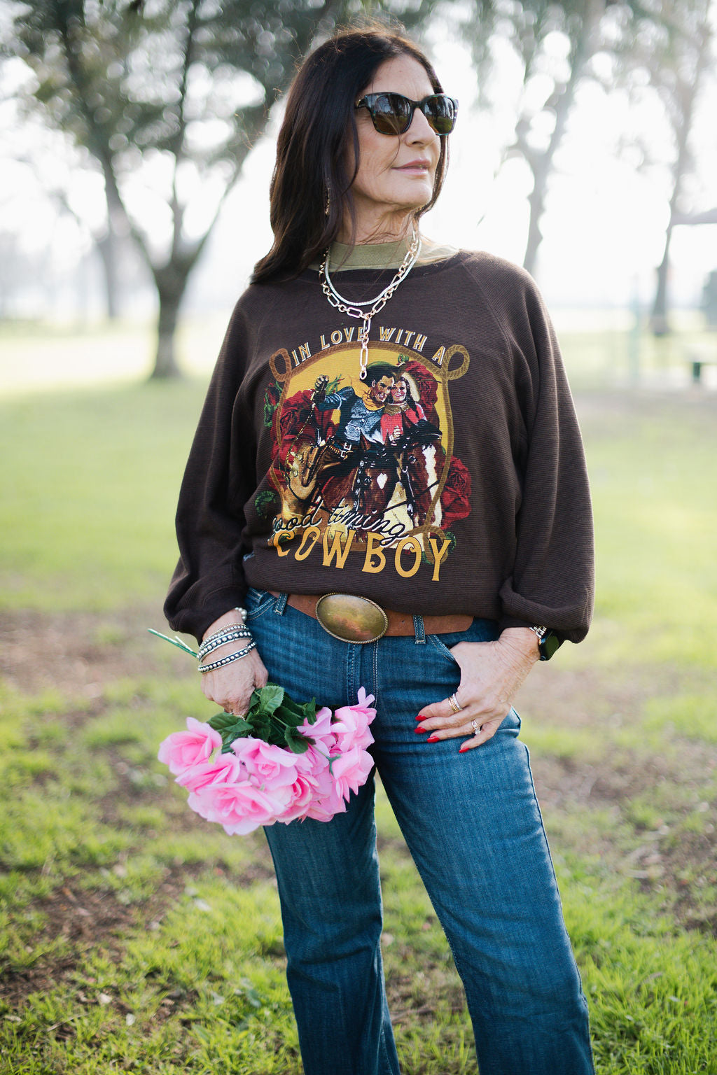 Saddle up for effortless style with our Good Timing Brown Crew Neck—a lightweight essential that whispers western charm without the fuss. Crafted in a soft, thin knit, this crewneck features our signature cowboy logo, perfect for layering or wearing solo. Whether you're heading to the rodeo or just vibing with that laid-back ranch aesthetic, this piece pairs beautifully with everything in your closet. Sometimes the best outfits come down to good timing and a cozy crew that gets it.