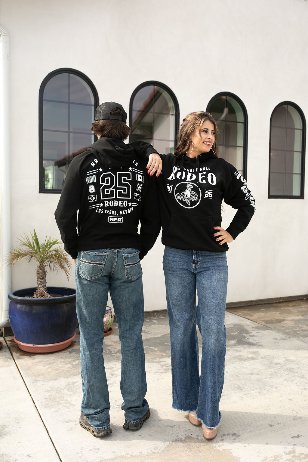 The Rodeo Hoodie 25" packs big cowgirl energy into a cropped, modern silhouette. With bold graphics and a slightly boxy 25" cut, it’s the perfect mix of edgy and effortless. Whether you're ringside or roadside, this hoodie keeps your Western style loud, proud, and right on trend.