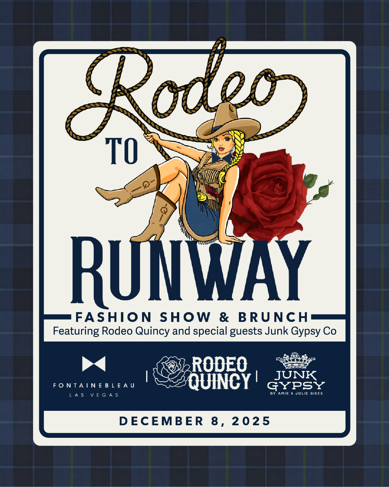 This event brings the spirit of Rodeo Quincy to the runway with signature styles from Quincy Eldridge and the Junk Gypsy sisters, star-studded appearances from NFR contestants, hosted by Carson Kressley, and a $1000 RQ shopping spree for the best-dressed.