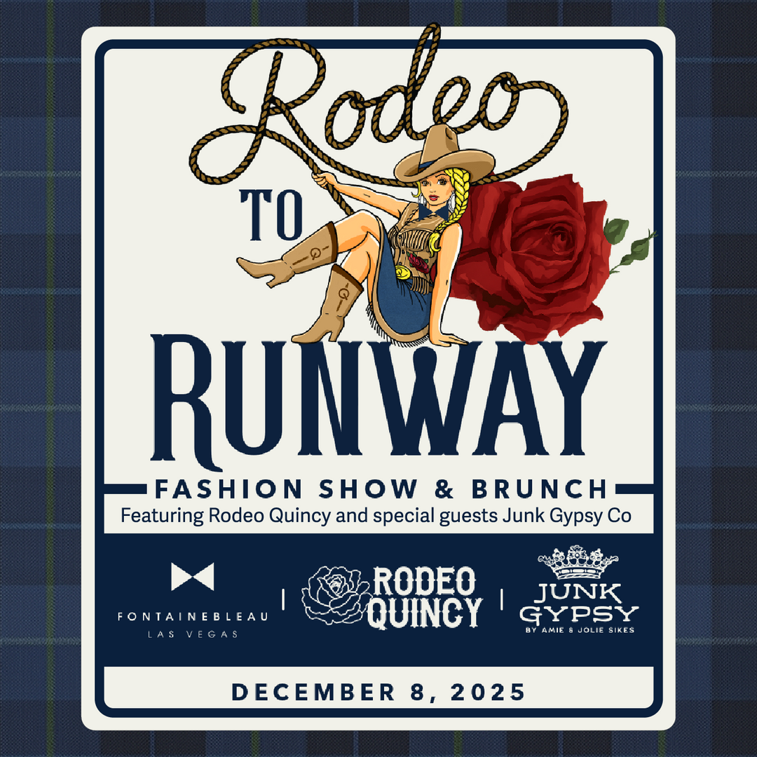 On Monday, December 8th, Rodeo Quincy takes over Fontainebleau Las Vegas with a one-of-a-kind fashion brunch. The runway comes alive with signature styles from Quincy Eldridge and the Junk Gypsy sisters, appearances by NFR contestants, and a $1000 RQ shopping spree for the best-dressed. From bold fashion to a celebratory brunch, it’s a morning for those who live loud, dress bold, and carry the West wherever they go.
