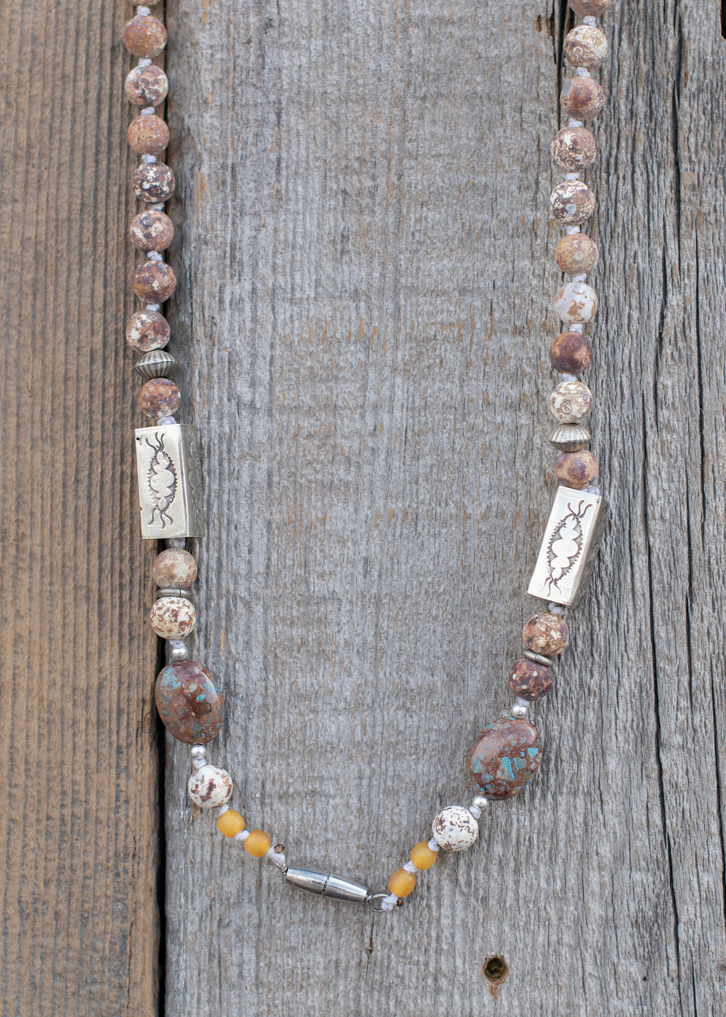 Elevate your everyday style with the Dalyn Beaded Necklace, featuring warm earth tone beads paired with beautifully stamped silver accents. This versatile piece combines natural, grounding colors with stamped silver details for a sophisticated look that transitions seamlessly from casual to dressed-up occasions. The thoughtful design brings texture and visual interest to any outfit, making it a timeless addition to your jewelry collection.