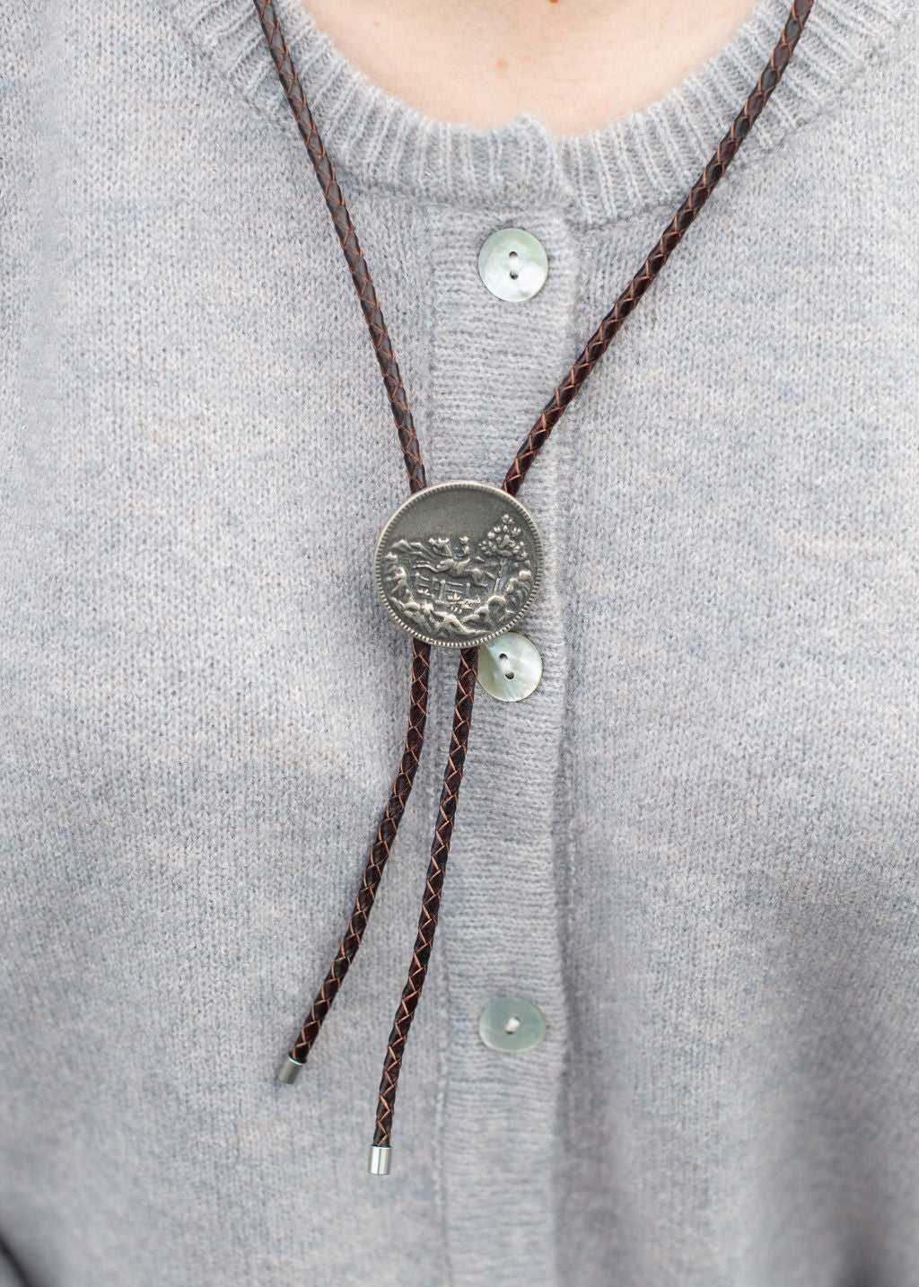 Say hello to the Del Mar Bolo—a totally adorable bolo tie necklace that's sure to turn heads! Made from genuine leather with an eye-catching race horse featured on the bolo, this piece is perfect for anyone who loves western style with a sporty twist. It's the kind of accessory that makes a statement while keeping things fun and flirty. Layer it, wear it solo, or pair it with your favorite outfit for instant personality and charm!