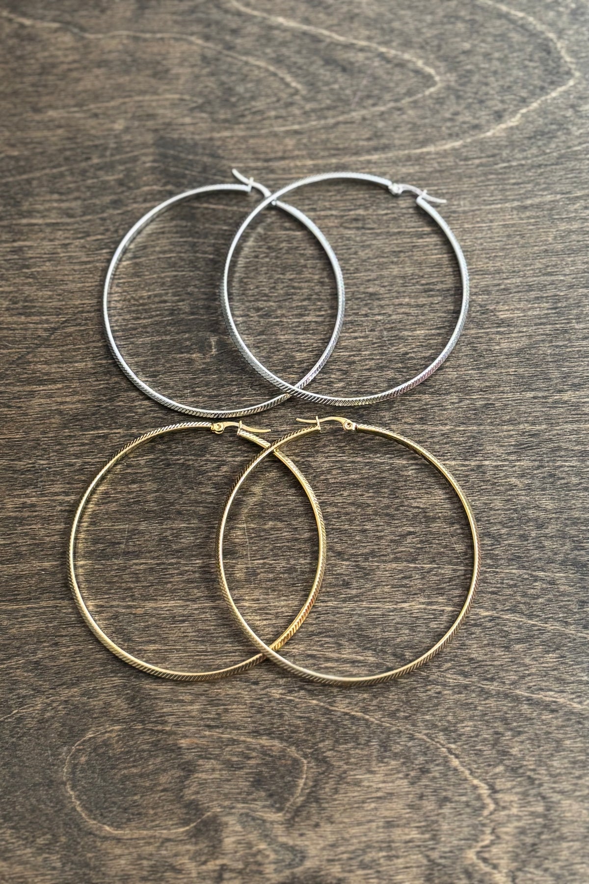 Elevate your everyday look with the Large Louie Hoops, the perfect finishing touch to any ensemble.