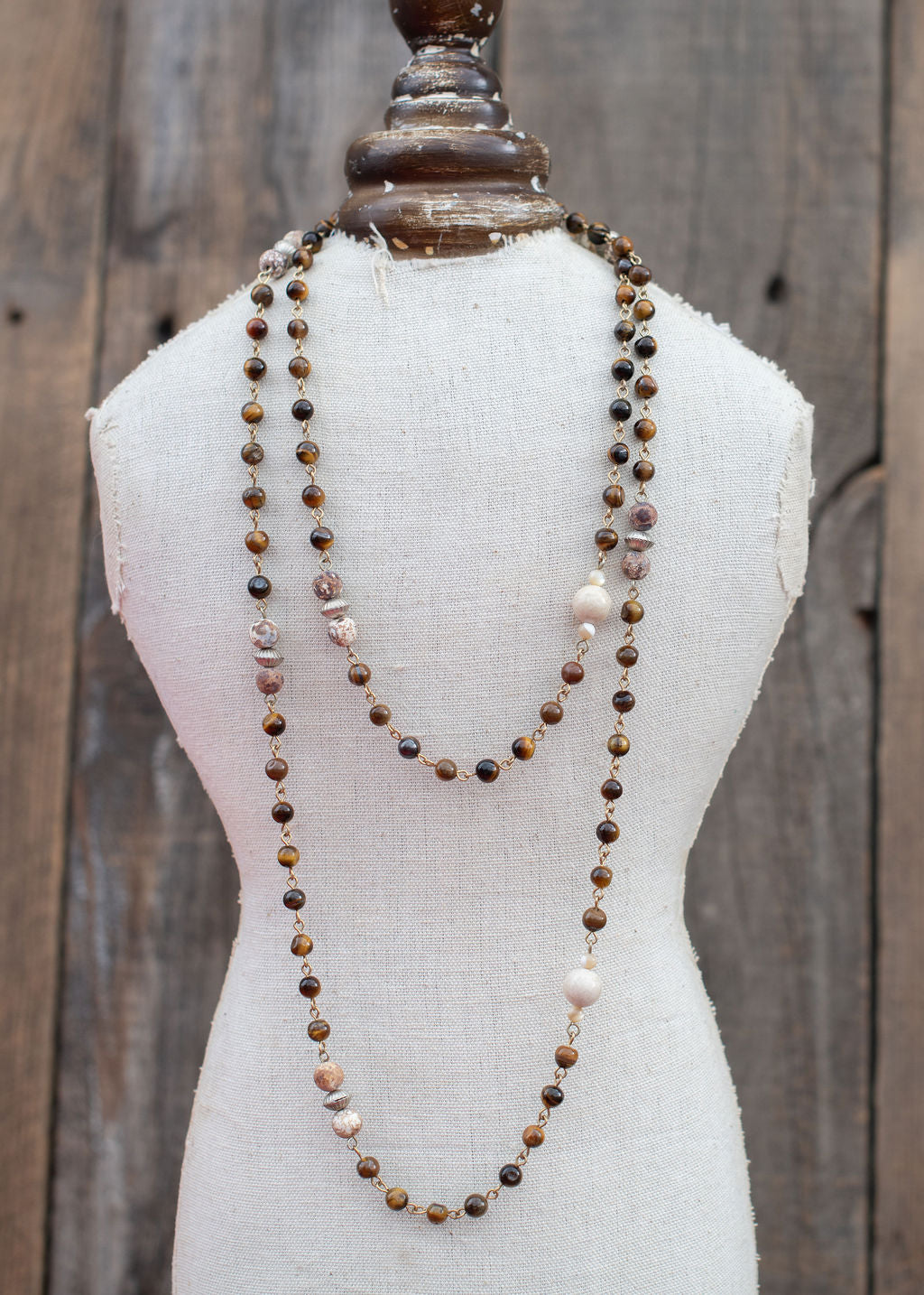 Elevate your everyday style with the Lyle Lengthy Beaded Necklace, a sophisticated layered piece featuring a rich blend of brown and a pop of white beads accented with gleaming silver details. The extended length creates a versatile look that works beautifully worn alone or layered with other pieces. Perfect for adding texture and visual interest to casual outfits or d