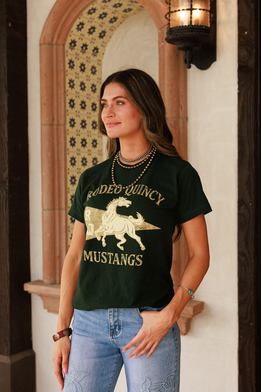 Designed by Lily Hay, the RQ Mustangs Tee draws from her Cal Poly heritage and the strength, discipline, and Western spirit of those formative years she spent as a Mustang. This collegiate inspired tee fuses timeless campus energy with Rodeo Quincy's distinctive edge, delivering an effortless cool-girl Western vibe that doesn't compromise on comfort.